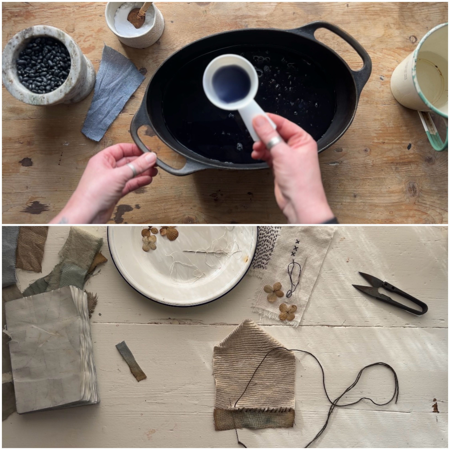 Lær å farge stoff med avokado, bønner og løk og sy din egen rå journal.